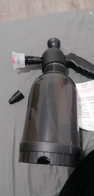 The foam is good but not like in the video and it leaks a lot and not much pressure! ! Furthermore, for a car, you often need to pump to get the quantity on the car! ! Too bad, otherwise good quality.