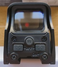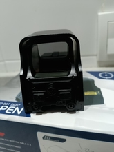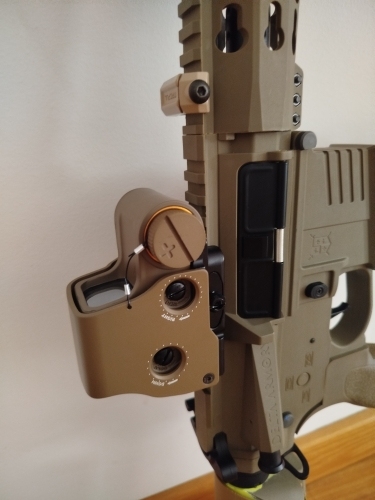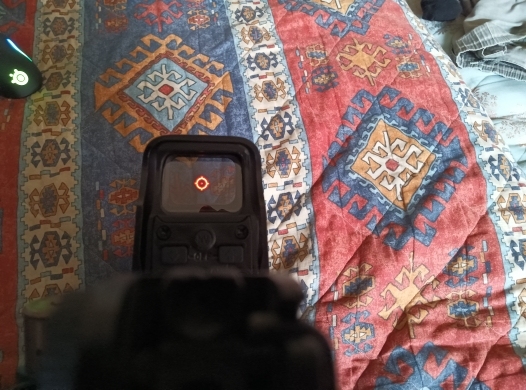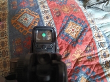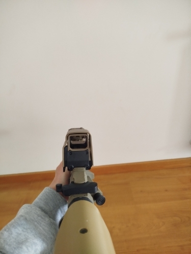 It is a red point camouflaged as holographic. It has a lot of parallax and weighs a quintal but it’s worth it. It seems solid, I bought it because I wanted something precious that could withstand some airsoft bullets. Easy to adjust, fits well on the rail. The LED reflects a little and the front glass, acting as a reflector, darkens the view. In summary, it is a red dot that looks like eotec. But for that price, you can’t ask for much.