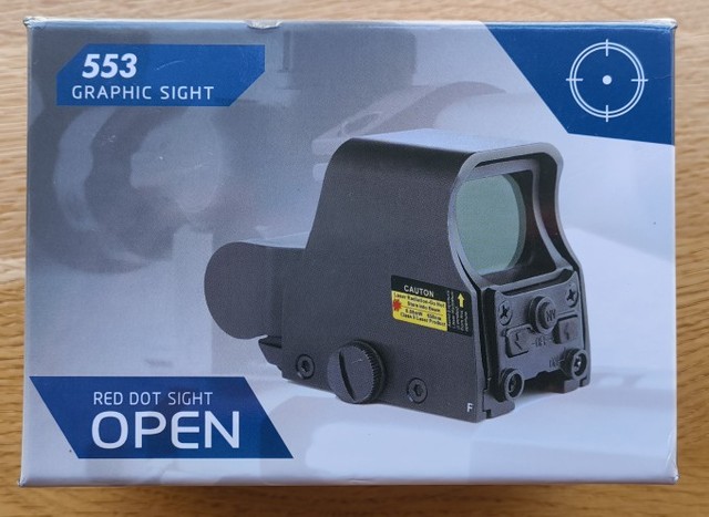 Delivery was quick. Great device. My dart blaster is now a high-precision instrument🎯. The construction is solid. The 551 version has no logo. But that’s not a problem for me. There is minimal reflection outside. The target acquisition could be a bit brighter for outdoors. The parallax error is low and the illuminated dot is amazingly sharp. Overall, it’s a great red dot for the price. I can fully recommend it for hobby use.
